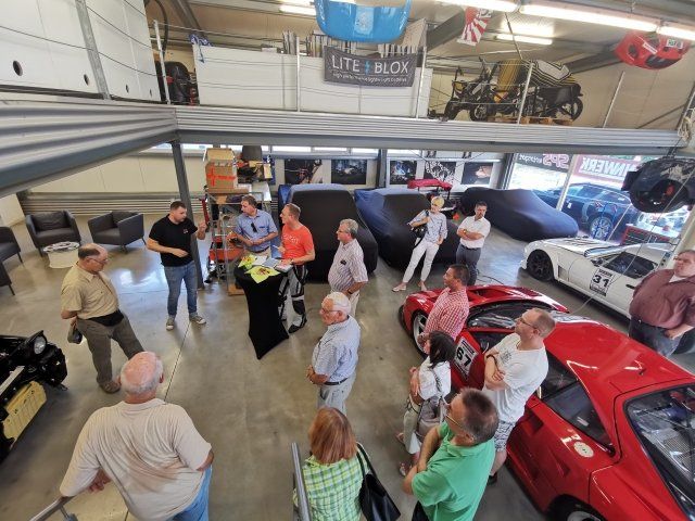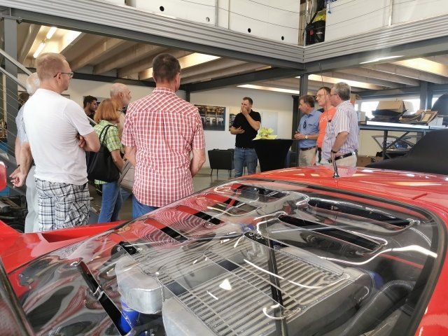 Bereits 14 Kolleginnen und Kollegen sind bei SPS Motosport beschäftigt und Jan Spies bekräftigte, dass er auch gerne weitere einstellen würde. Der Facharbeitermangel hindere ihn allerdings aktuell daran. In dem Zusammenhang berichtete er von seinen Bemühungen, einen Flüchtling zu beschäftigen und von den damit verbundenen bürokratischen Hürden. Neben KFZ-Meistern sind in Altendiez Karosseriebauer, KFZ-Elektriker, Mechaniker, Schweißer, Lagerverwalter und Bürokaufleute beschäftigt. Ein Mitarbeiter kümmert sich ausschließlich um Social Media und den zeitgemäßen Auftritt von SPS Motorsport im world wide web. Dazu zählt mittlerweile auch, Anbau- und Umbauanleitungen auf youtube anzubieten. Spezialisiert hat sich das Unternehmen auf Tuning rund um den Mazda MX 5 – immerhin das weltweit erfolgreichstes Roadster-Auto. Als KFZ- und Karosseriemeisterbetrieb kommen aber auch gerne Kunden anderen Fahrzeugmarken nach Altendiez, um ihre Fahrzeuge zur restaurieren, zu tunen und „aufzupeppen“. Neben Mazda sahen die Besucher Fahrzeuge der Marken Ferrari, Porsche und Suzuki. Die SPS Classic wiederum bietet vor allem die Restauration und den Umbau klassischer Fahrzeuge. Das Besondere daran: der Kunde erhält alles aus einer Hand. Komplettiert wird das Angebot durch das SPS Rennwerk, das den Service rund um die Rennstrecke bietet und auch für die Betreuung vor Ort da ist.